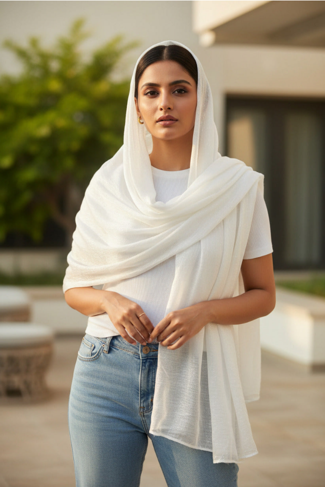 Offer PriceIvory Whisper — Modal Silk Soft Drape Stole