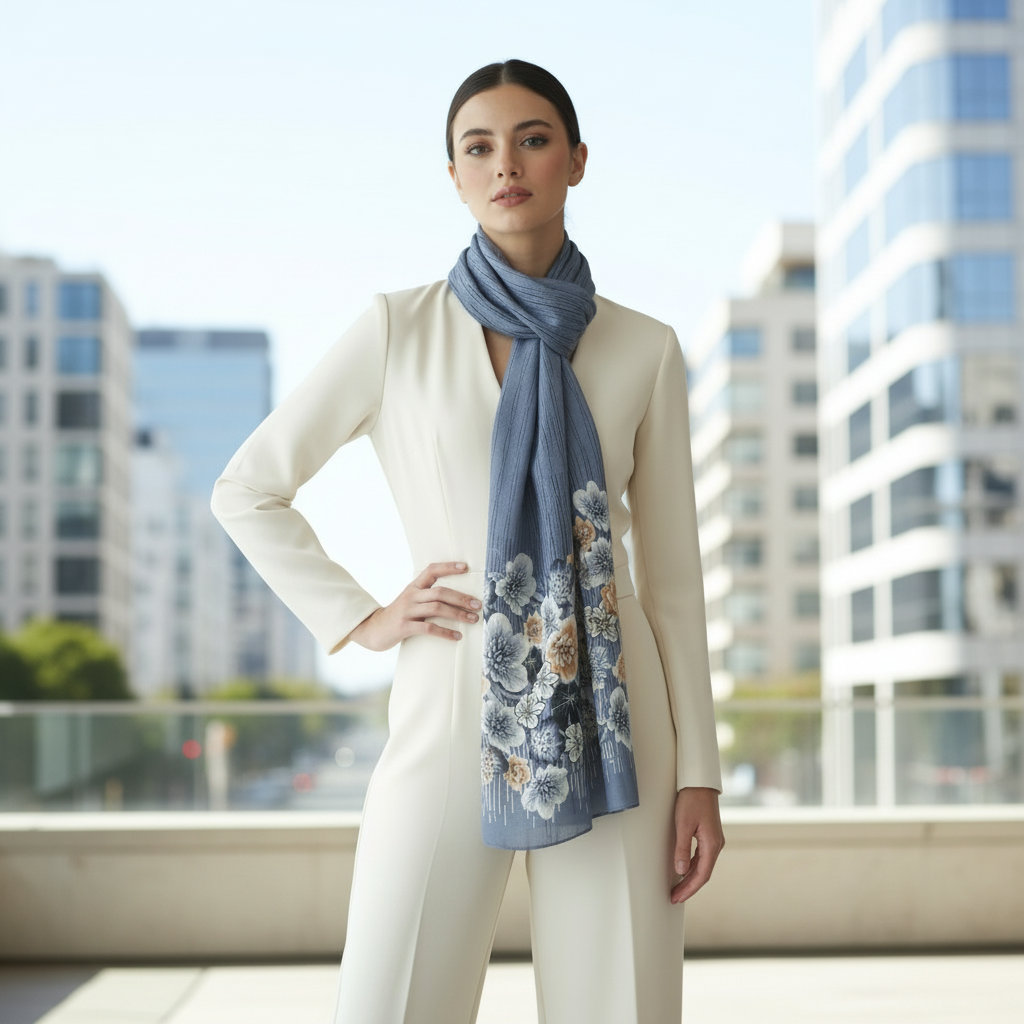 ✨ Dusty Blue Bloom — Premium Viscose Floral Scarf