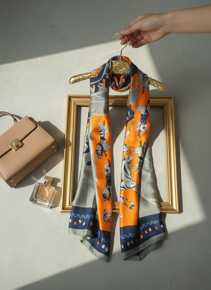 Luxury Satin Scarf | Equestrian Print | Premium Silk-Feel Drape