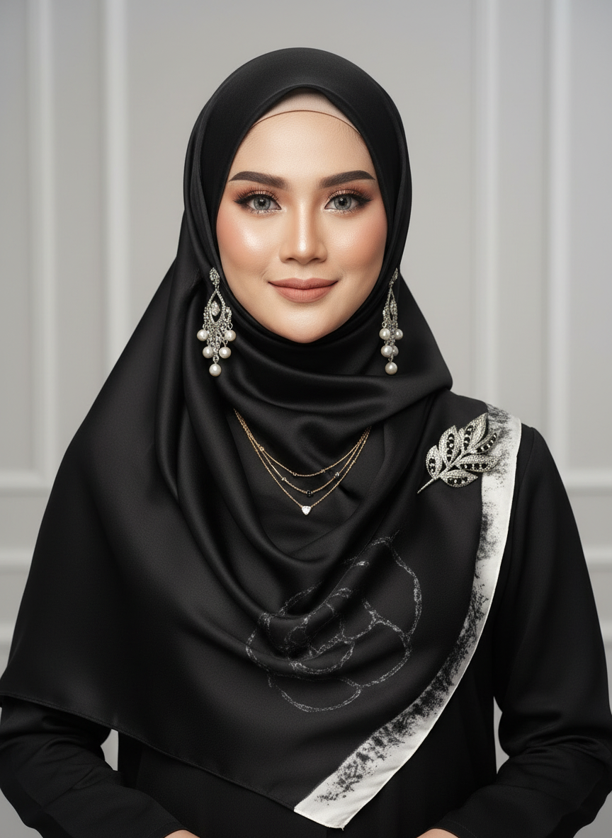 Pairs beautifully with black and white, outfits. Dress it up or down — this scarf pairs effortlessly with blazers, trench coats, and neutral outfits. Style as a neck scarf, hijab, or draped over the shoulders for an elegant finish. Perfect with gold jewelry, sunglasses, and a structured handbag for a timeless luxe look.
