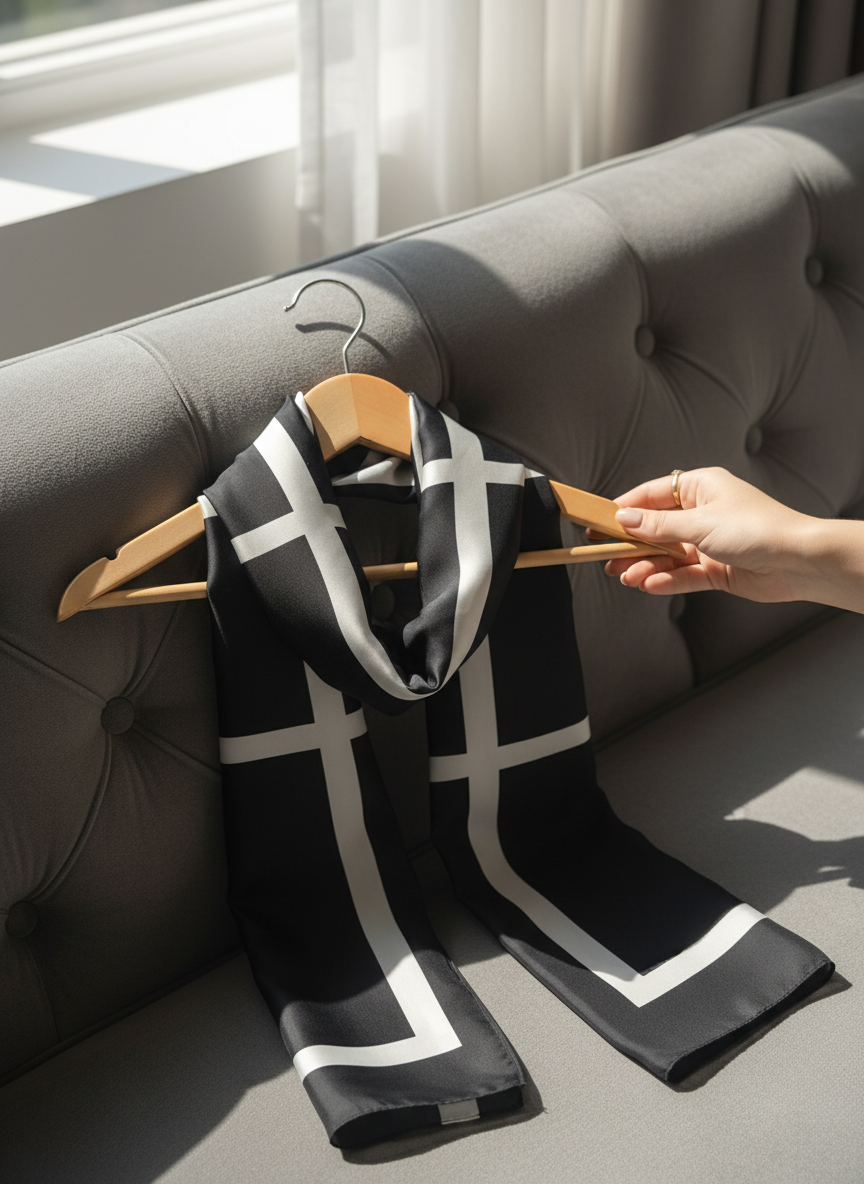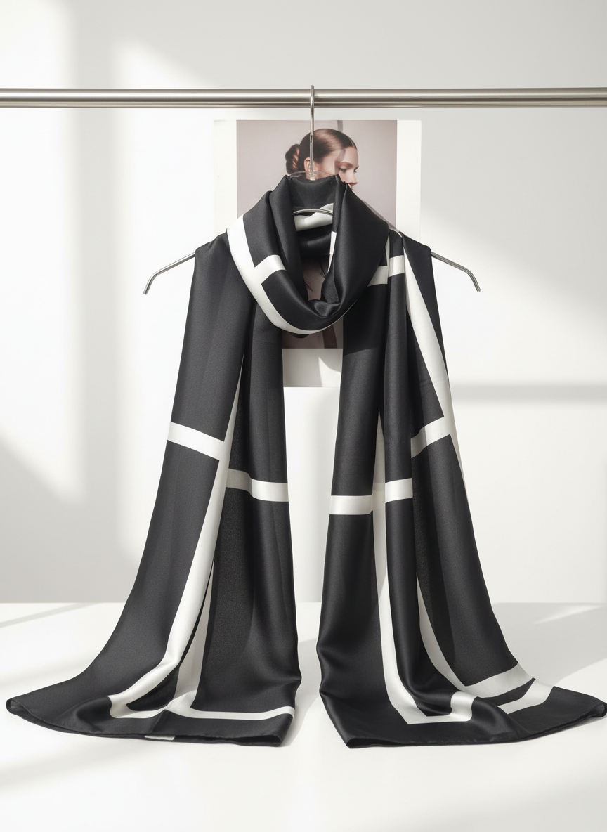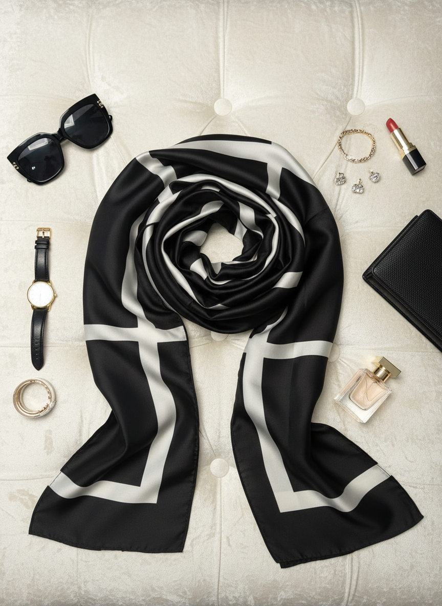 Silk-Feel Satin Scarf | Minimal Luxe Edit | Monochrome Pattern