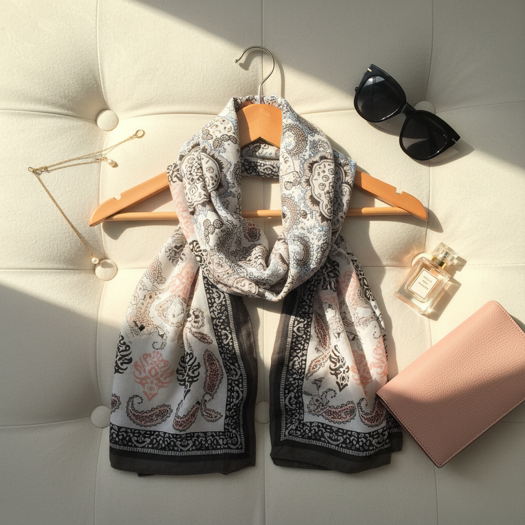 Designed for women who love classic art patterns, soft glamour, and subtle luxury, this scarf transitions seamlessly from casual daywear to elegant evening edits.
